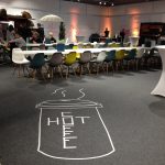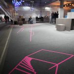 Eine Riesenfreude für mich als Schuh-(und Jacken-) fetischisten: Auf großen und kleinen Flächen von insgesamt fünf Messehallen durfte mein Team und ich für ANWR in Mainhausen bei Aschaffenburg freestyle erstelltes Klebe-Artwork/Tape Art erstellen. Das zweite ANWR Zukunftsforum wurde erfolgreich mit raumübergreifenden Gestaltungen in Vektorästhetik mit Neon Tape beglückt. Sowohl der Veranstalter, als auch teilweise Stände der 60 Aussteller auf dem CAMPUS Mainhausen wurden live mit Tape Art, die auch zeitgleich als Leitsystem diente, versorgt. Viele Teilnehmer und Aussteller ließen sich von den Innovationen und Techniken der Handelszukunft mitreißen und erlebten spannende Vorträge über Innovationen.