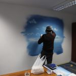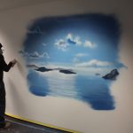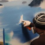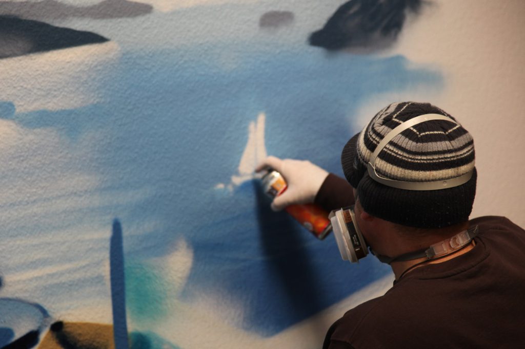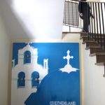 In 2014, I was asked to design some artwork in the staircase and some artwork at the management rooms for the Hellenic Tourist Office (as usual freehand without tools, without stencil or similar). Due to the enthusiasm about the results, the Association of Greek Academics Frankfurt am Main e.V. invited me to create three works on framed canvas for an exhibition.
