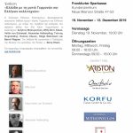 2014 wurde ich angefragt, für die Griechische Zentrale für Fremdenverkehr im Treppenhaus und die Geschäftsführungsräume (wie immer freihand ohne Hilfsmittel, ohne Schablone o.ä.) Werke zu gestalten. Aufgrund der Begeisterung über die Ergebnisse lud mich der Verein Griechischer Akademiker Frankfurt am Main e.V. ein, drei Arbeiten für eine Ausstellung zu erstellen.