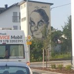 Unfortunately, nothing in the village of Marxheim was reminiscent of the painter Ludwig Meidner, who lived there for a long time, worked and also felt comfortable. That awakened in me the urge to create a worthy memorial for him, so that I thought up an area that could be prominently enough and unmistakably reminiscent of him. Thanks to the society of art Hofheim and its former chairman Dr. Gerhardt Marquordt, Cornelia von Plottnitz, the city of Hofheim and Syna, I was able to realize Ludwig Meidner’s self-portrait on a transformer building in Hofheim-Marxheim in June. Thanks to my colleague and buddy Andreas Schmoll. As if almost taken for granted, I sprayed without aids such as a projector or beamer and thus imitated the style of Meidner’s line drawing from 1955. What was implemented in five hours took four years of approval and negotiation by and with the institutions.