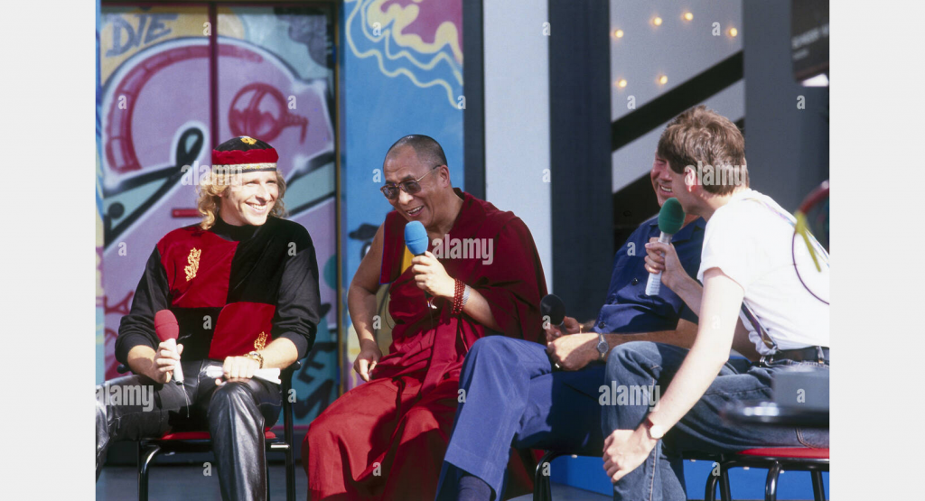 - Thomas Gottschalk Dalai Lama 14th tenzin gyatso IFA 1991 vor Graffiti Artwork von Katmando und Bomber