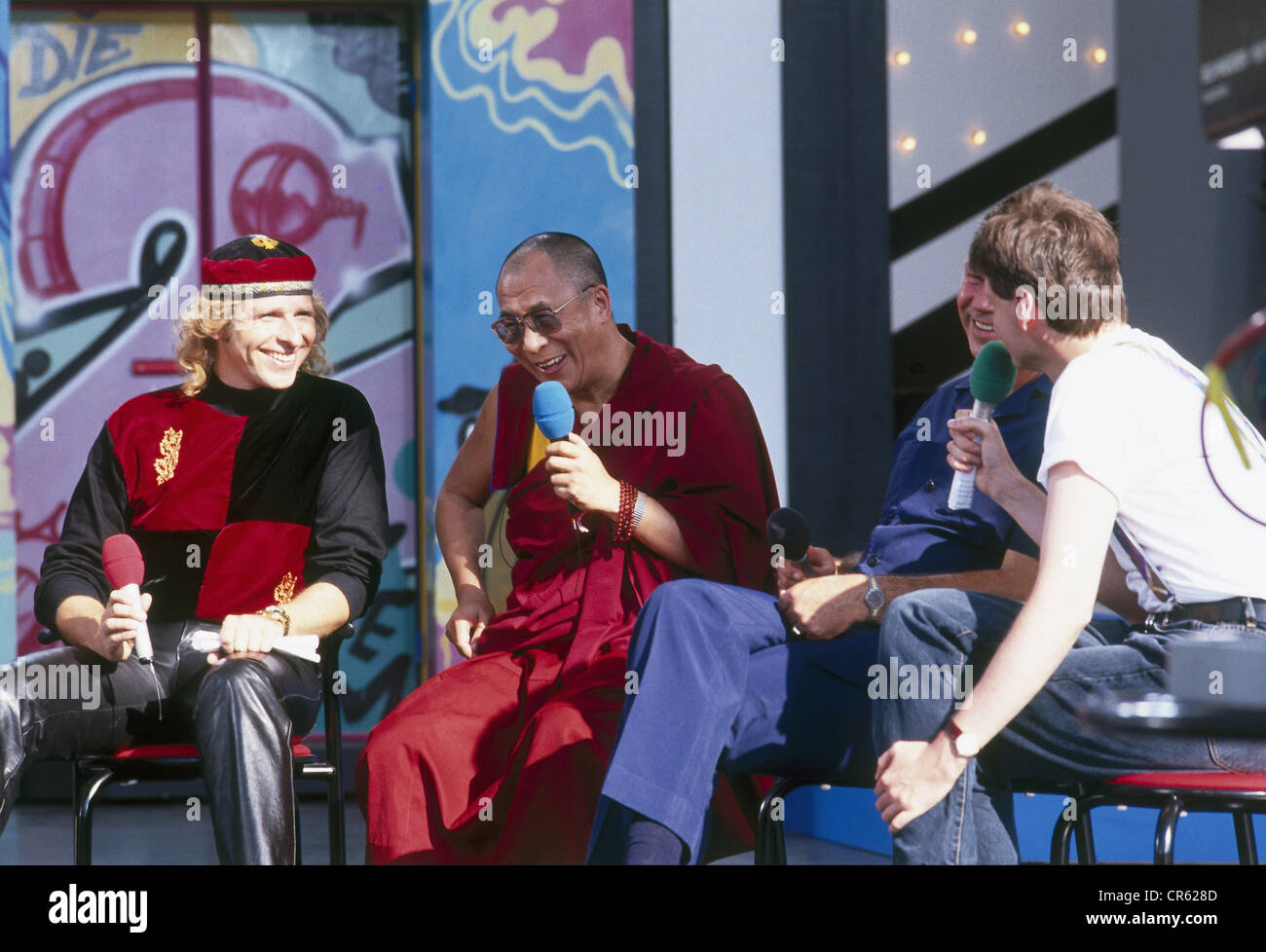 Dalai Lama 14th tenzin gyatso IFA 1991 vor Graffiti Artwork von Katmando und Bomber