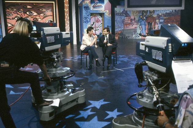 Günther Jauch vor Graffiti Artwork Die 2 im 2ten, IFA Berlin 1991