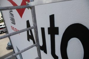 Gespruehtes Logo Schildermalerei SEAT Autohaus Petri, Diedenbergen 2014