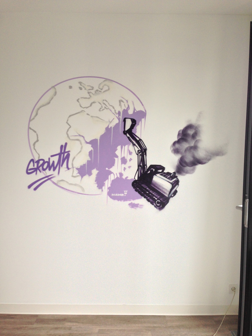 Wie viele Büros und Innenräume ich in 36 Jahren künstlerischer Dienstleistung als Graffiti Art gesprüht habe ist kaum noch nachvollziehbar. Hier mal ein kleines nettes Beispiel aus 2013 aus dem Frankfurter MA für Aiticon, einem APP-Hersteller…
